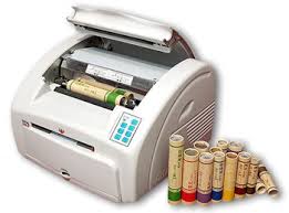 | Pesaje de precisión de los cartuchos de monedas para control con el valor incluido. Impresión de etiqueta con codigo de barras para enviar a los bancos. Cliente Casa de Moneda - Rep. Argentina. Año 1998. |