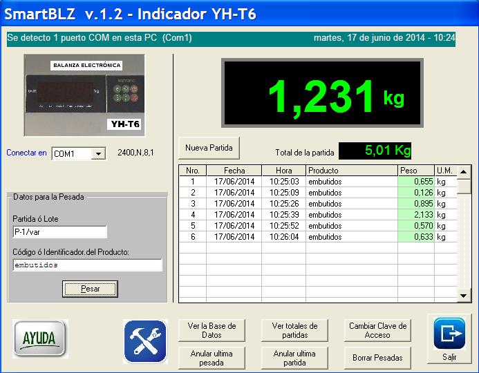 La pantalla de pesaje contiene todo los elementos necesarios para efectuar las pesadas.